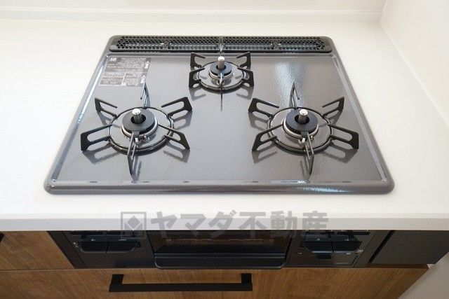 同仕様写真。複数の調理を一度に行うことができる3口コンロ。効率よくお料理が出来ます。毎日のお料理も楽しくなりますね^^