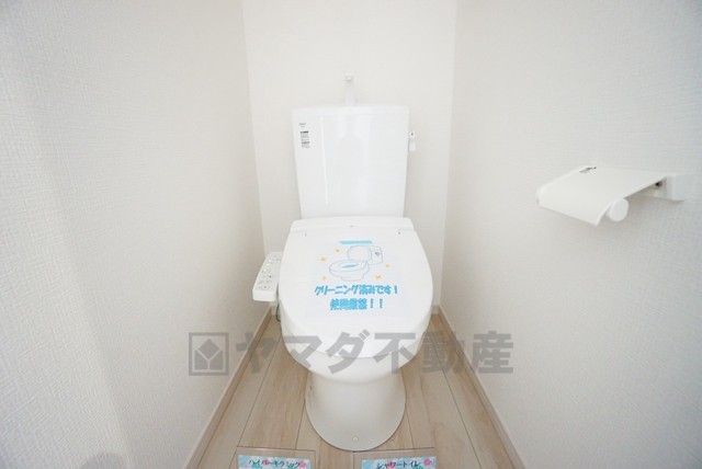 温水洗浄機付トイレです。節水機能もあるので、安心して使えますね。もちろん、1階2階の2ヶ所にトイレがあるので、忙しい朝にもゆとりができますね。