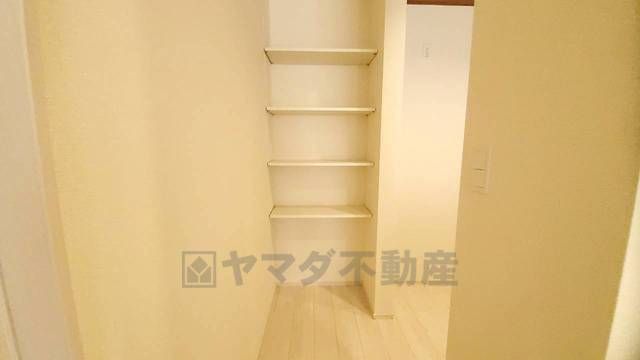 まとめ買いしてもこの収納量なら心配要らずのパントリー。調理家電や食品のストックをすっきりまとめられ、キッチン周りを広々使えます。