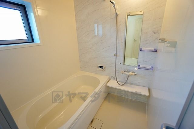 同仕様写真。広々1坪タイプの浴槽ユニットでゆったりくつろげるバスルーム。窓、浴室乾燥機付きで換気・雨の日の洗濯もばっちり^^