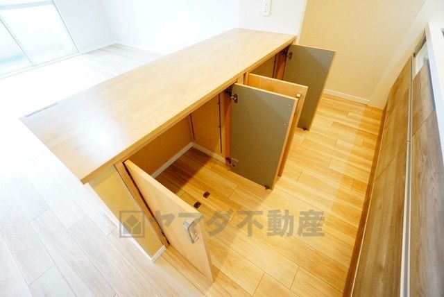 大容量のシューズボックスは家族全員の増えがちな靴や物をすっきり収納できます。急な来客でも、いつも整頓された玄関でお出迎えができます。