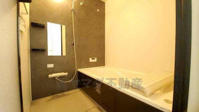 1日の疲れを癒すくつろぎのバスルーム。足を伸ばしてもゆったりと入れるサイズです。お子様と一緒にお風呂に入っても狭くないですね^^