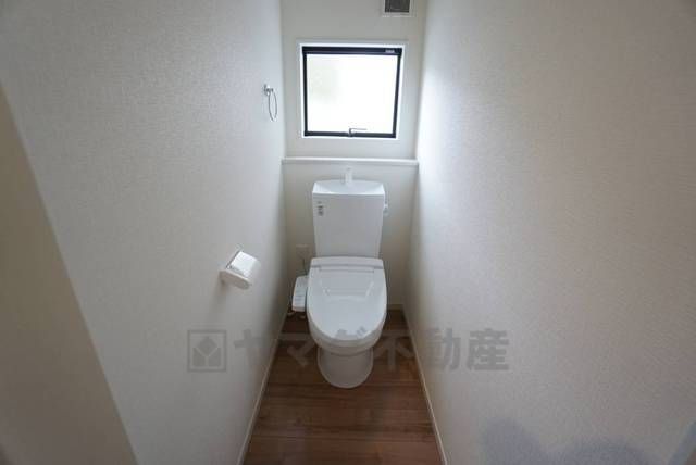温水洗浄機付トイレです。節水機能もあるので、安心して使えますね。もちろん、1階2階の2ヶ所にトイレがあるので、忙しい朝にもゆとりができますね。