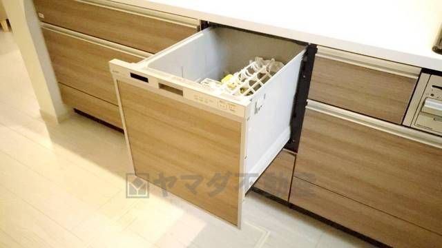 食事の後の手間を解消する食器洗い乾燥機付。冬場の洗い物で手荒れの悩みもなくなります。手洗いよりも節約できて便利。