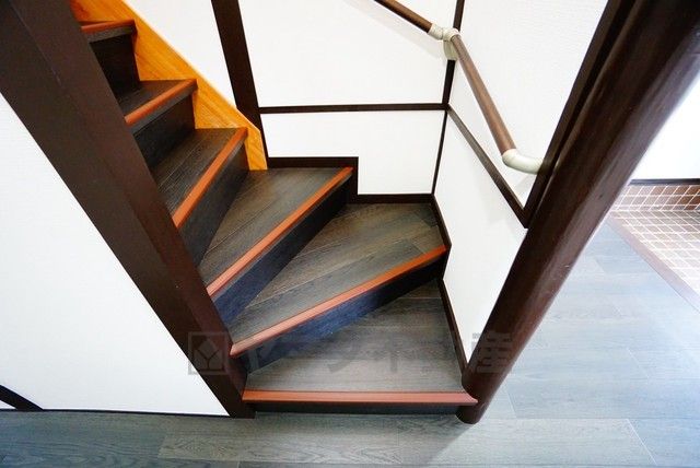 小さなお子様やご高齢の方でも安心できる、手すり付き階段。