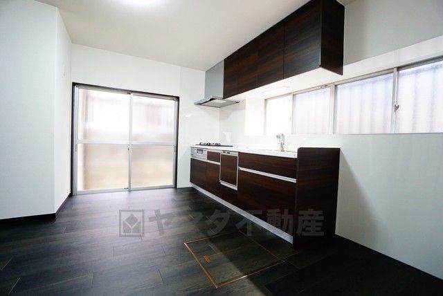 壁付けキッチンなので料理に集中したい方等におススメです^^吊戸棚があるので普段使わないものや非常食置き場としても使えそうです^^
