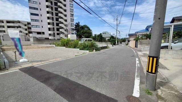 現地(2025年9月30日)撮影。前面道路は広く、車同士がすれ違うスペースが十分にあります。落ち着いた住宅地内で快適な生活を実現してみませんか^^