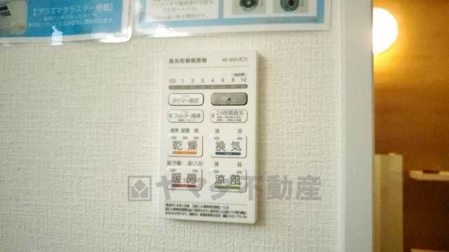 雨の日の洗濯も安心できる浴室暖房乾燥機付き浴室。リモコンで操作もボタン1つで簡単。
