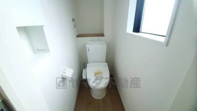 温水洗浄機付トイレです。節水機能もあるので、安心して使えますね。もちろん、1階2階の2ヶ所にトイレがあるので、忙しい朝にもゆとりができますね。