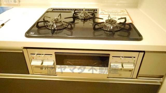 複数の調理を一度に行うことができる3口コンロ。効率よくお料理が出来ます。毎日のお料理も楽しくなりますね^^