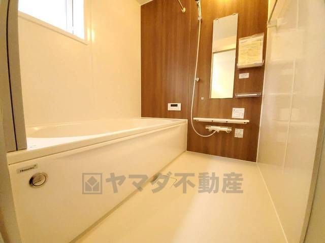 1日の疲れを癒すくつろぎのバスルーム。足を伸ばしてもゆったりと入れるサイズです。お子様と一緒にお風呂に入っても狭くないですね^^