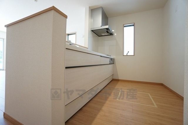 同仕様写真。リビングにいるお子様を見守りながらお料理ができる対面キッチン。カウンタートップの汚れもサッと拭き取ることができ、お掃除ラクラク^^