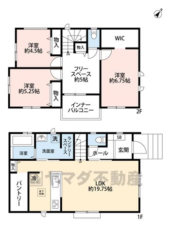 LDK19.7畳(1F)、洋6.7畳(2F)、洋5.2畳(2F)、洋4.5畳(2F) |