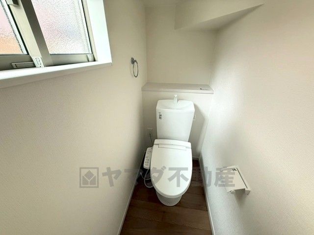 温水洗浄機付トイレです。節水機能もあるので、安心して使えますね。もちろん、1階2階の2ヶ所にトイレがあるので、忙しい朝にもゆとりができますね。