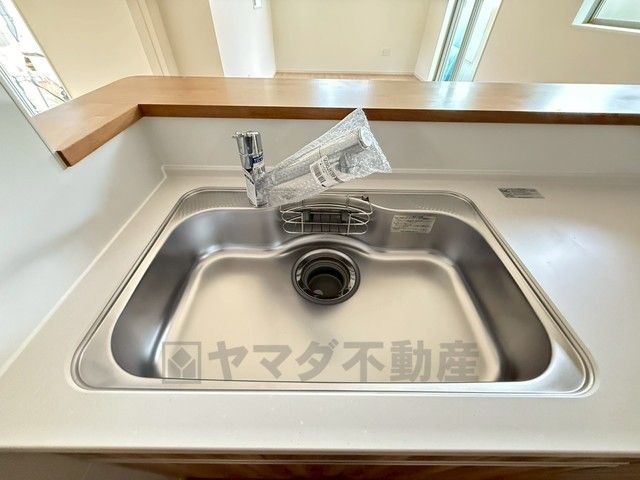広々とした凸型シンクに洗剤ポケットを標準装備。大きなお鍋など洗いやすいです。