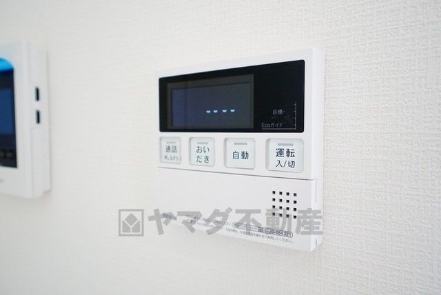 キッチン横からお湯張り、追い炊き、足し湯がボタン一つで楽々操作できる給湯機リモコンです^^忙しい夕飯の準備の時間帯に重宝しますね。