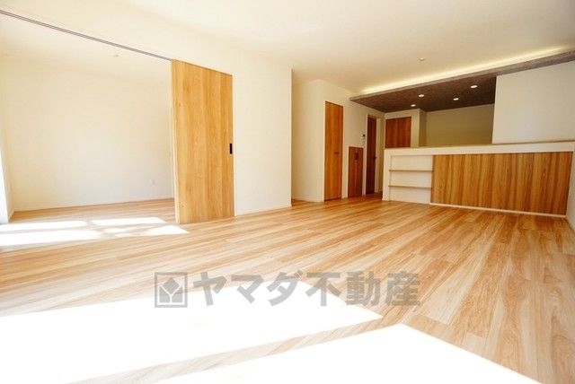 家具はイメージです。リビングは広々とした設計で、家族が集い、寛ぐ暮らしの空間を演出しています。思い思いの時間を過ごしたり、家族みんなで食事をしたり、素敵な団らんの場になりますね。