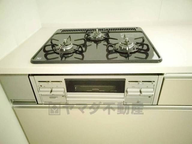 複数の調理を一度に行うことができる3口コンロ。効率よくお料理が出来ます。毎日のお料理も楽しくなりますね^^