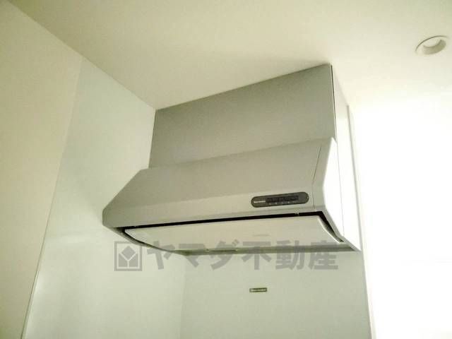 風量が弱・強と切替え可能なレンジフードが調理中の煙をしっかり吸い込みます。手元を照らすライト付きです。