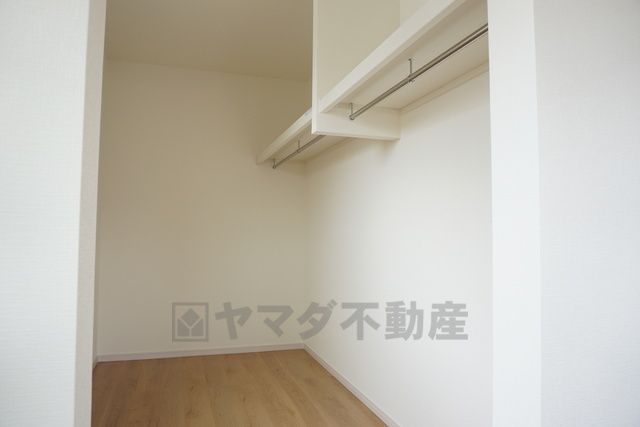 同仕様写真。季節物の衣類もスッキリ収納できるウォークインクローゼット。クローゼット内で洋服のコーディネートから着替えまで中で出来るので、部屋が散らかりにくいです。