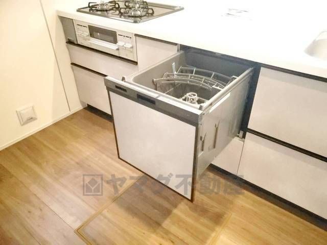 食事の後の手間を解消する食器洗い乾燥機付。冬場の洗い物で手荒れの悩みもなくなります。手洗いよりも節約できて便利。