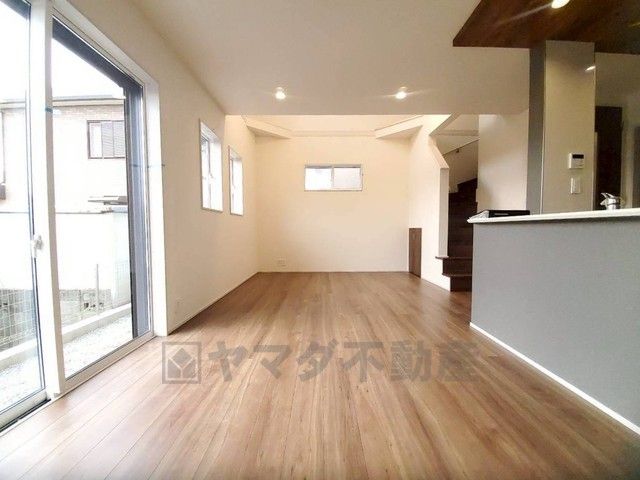 大きな窓のあるリビングは、陽光あふれる明るい空間です。居心地良く、ご家族皆がゆったり寛げる憩いの空間となりそうです。