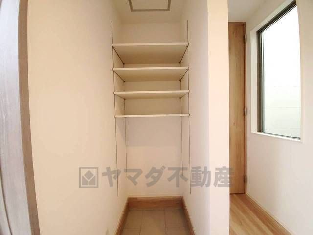 まとめ買いしてもこの収納量なら心配要らずのパントリー。調理家電や食品のストックをすっきりまとめられ、キッチン周りを広々使えます。