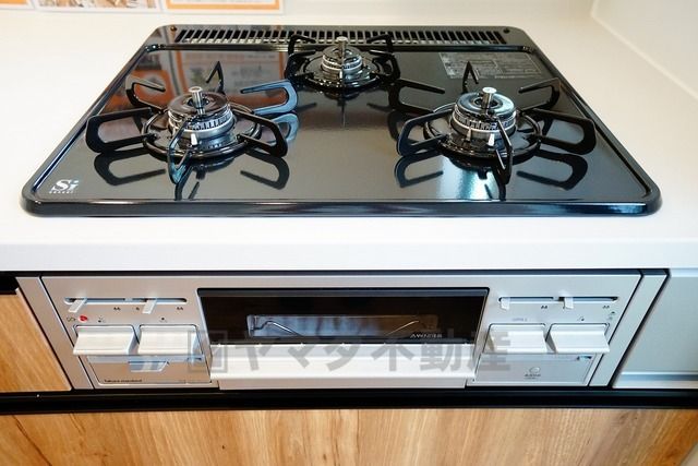 複数の調理を一度に行うことができる3口コンロ。効率よくお料理が出来ます。毎日のお料理も楽しくなりますね^^