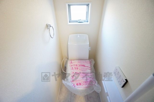 温水洗浄機付トイレです。節水機能もあるので、安心して使えますね。もちろん、1階2階の2ヶ所にトイレがあるので、忙しい朝にもゆとりができますね。