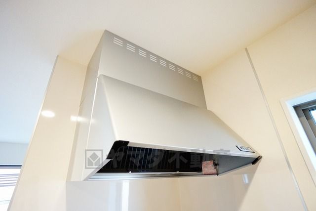 風量が弱・強と切替え可能なレンジフードが調理中の煙をしっかり吸い込みます。手元を照らすライト付きです。