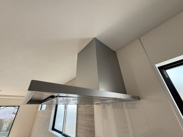 風量が弱・強と切替え可能なレンジフードが調理中の煙をしっかり吸い込みます。手元を照らすライト付きです。