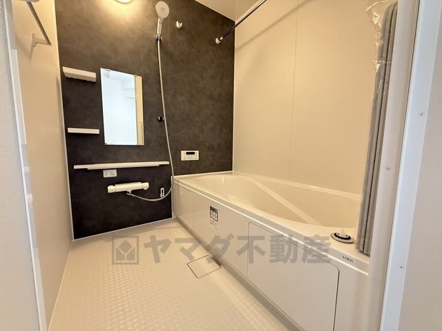 1日の疲れを癒すくつろぎのバスルーム。足を伸ばしてもゆったりと入れるサイズです。お子様と一緒にお風呂に入っても狭くないですね^^