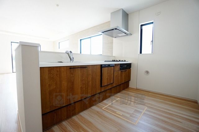 食事の後の手間を解消する食器洗い乾燥機付。冬場の洗い物で手荒れの悩みもなくなります。手洗いよりも節約できて便利。