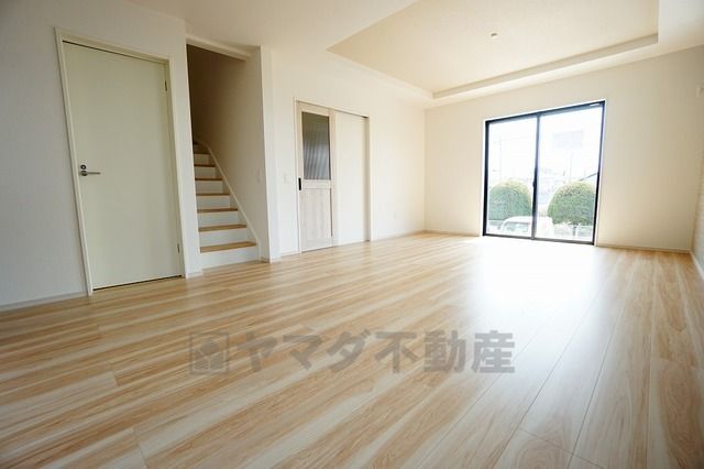 大きな掃き出し窓のあるリビングは、陽光あふれる明るい空間です。ゆったりと寛げる憩いの場となりそうです。