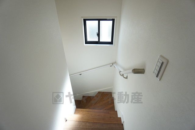 同仕様写真。小さなお子様やご高齢の方でも安心できる、手すり付き階段。段差も低めで設定されており、安全性にも優れています。