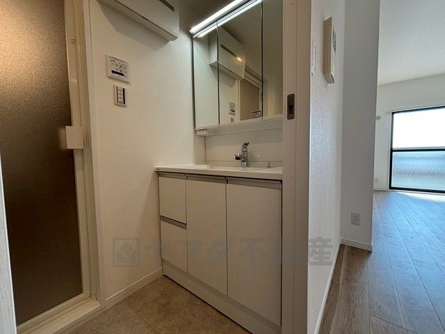 浴室暖房乾燥機付き。天候に左右されず、いつでも好きなときに洗濯物を干せるので、仕事や家事で忙しい方に重宝します。