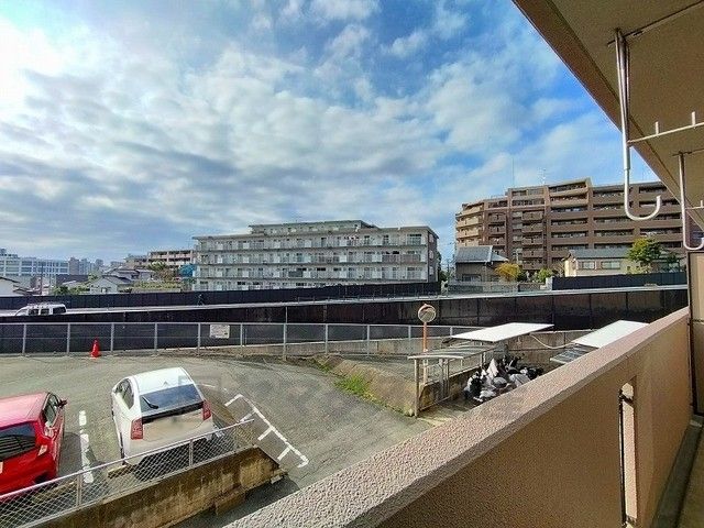 バルコニーからの眺望です。周りに高い建物がないので眺望良好です。南向きで、日当たりも良好。お洗濯物が良く乾きます。