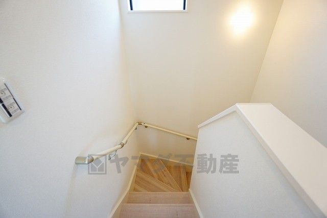 同仕様写真。小さなお子様やご高齢の方でも安心できる、手すり付き階段。段差も低めで設定されており、安全性にも優れています。