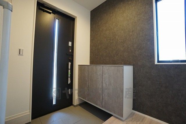 同仕様写真。壁一面に設けた大容量のシューズクローゼットは実用性と機能性を兼ね備えています。急な来客でも、いつも整頓された玄関でお出迎えができます。