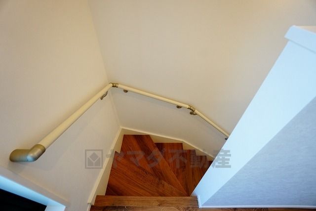 同仕様写真。小さなお子様やご高齢の方でも安心できる、手すり付き階段。段差も低めで設定されており、安全性にも優れています。