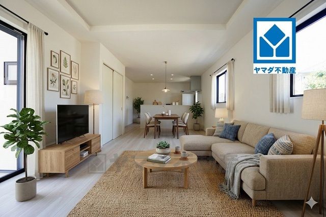 家具はイメージです。家族が集まる開放的なリビング。思い思いの時間を過ごしたり食事をしたり、素敵な団らんの場になりますね^^