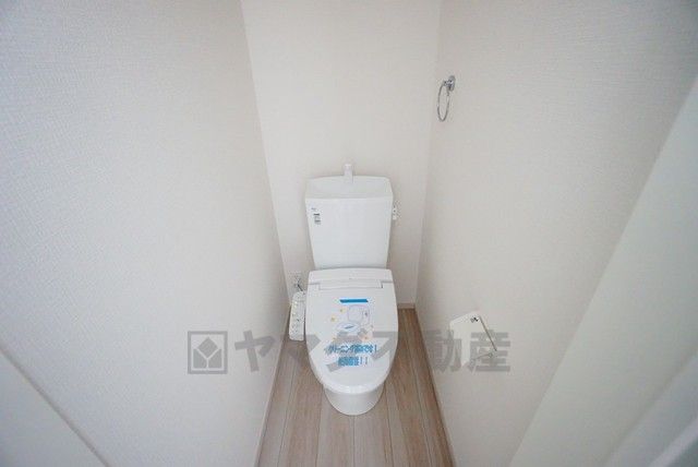 温水洗浄機付トイレです。節水機能もあるので、安心して使えますね。もちろん、1階2階の2ヶ所にトイレがあるので、忙しい朝にもゆとりができますね。