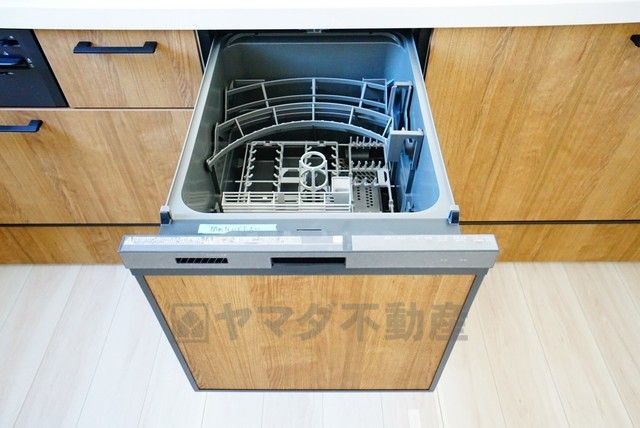 食事の後の手間を解消する食器洗い乾燥機付。冬場の洗い物で手荒れの悩みもなくなります。手洗いよりも節約できて便利。