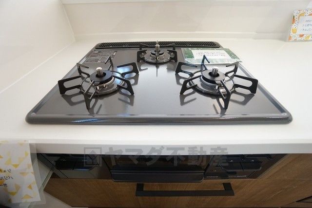 同仕様写真。複数の調理を一度に行うことができる3口コンロ。効率よくお料理が出来ます。毎日のお料理も楽しくなりますね^^