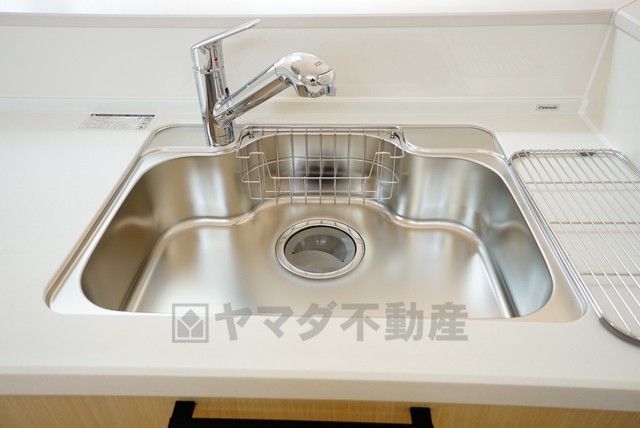 広々とした凸型シンクに洗剤ポケットを標準装備。大きなお鍋など洗いやすいです。