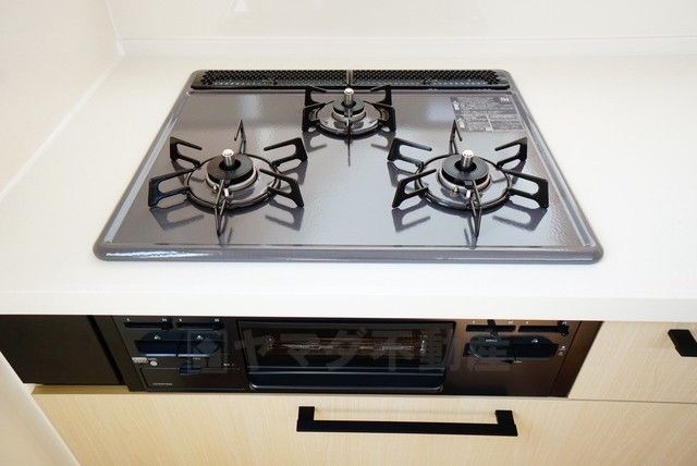 複数の調理を一度に行うことができる3口コンロ。効率よくお料理が出来ます。毎日のお料理も楽しくなりますね^^