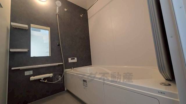 1日の疲れを癒すくつろぎのバスルーム。足を伸ばしてもゆったりと入れるサイズです。お子様と一緒にお風呂に入っても狭くないですね^^