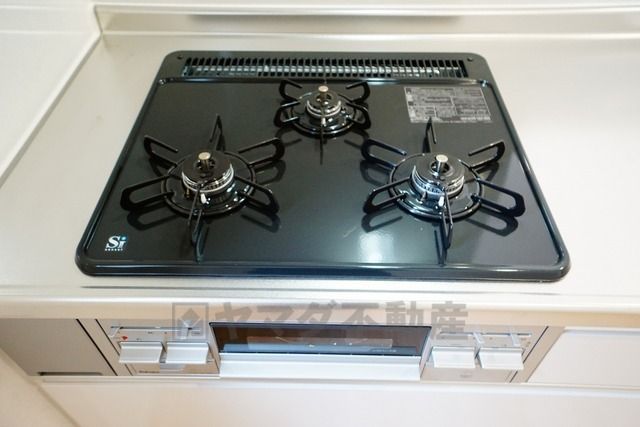 同仕様写真。複数の調理を一度に行うことができる3口コンロ。効率よくお料理が出来ます。毎日のお料理も楽しくなりますね^^