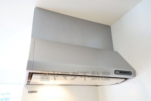 風量が弱・強と切替え可能なレンジフードが調理中の煙をしっかり吸い込みます。手元を照らすライト付きです。