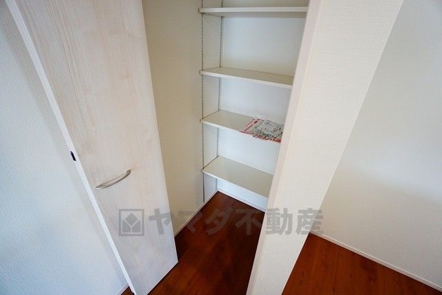 同仕様写真。まとめ買いしてもこの収納量なら心配要らずのパントリー。調理家電や食品のストックをすっきりまとめられ、キッチン周りを広々使えます。